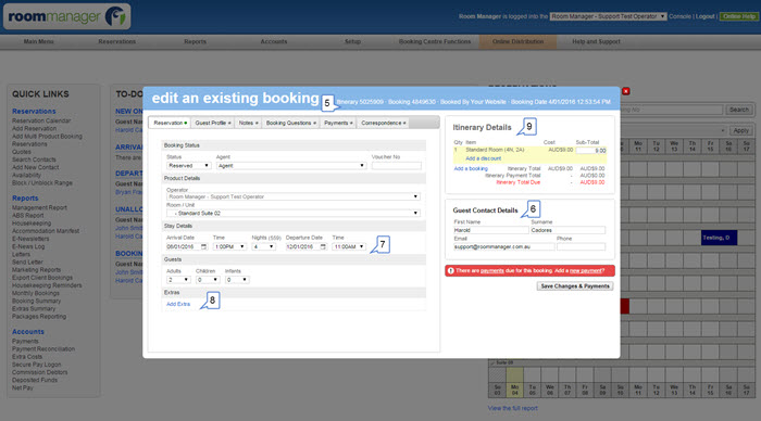 5. The booking notes section will show you particular details about the booking. These include which website or distribution channel the booking was made on